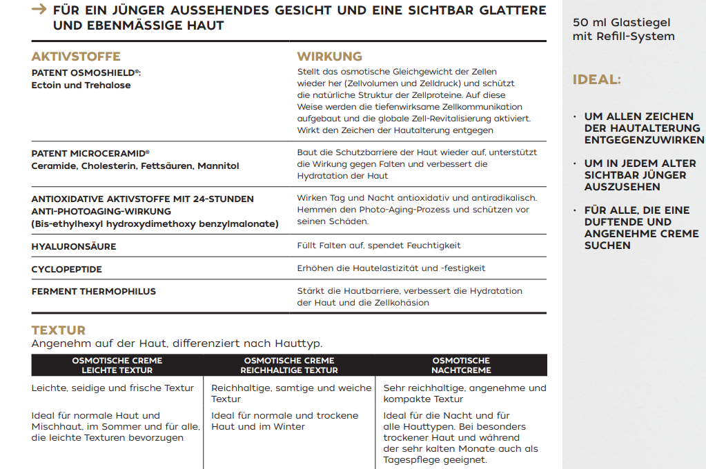 Dank höchster Anti-Aging-Innovation und dem angenehmen Duft ist die Osmotische Creme ideal für alle, die eine echte Premium-Pflege suchen.